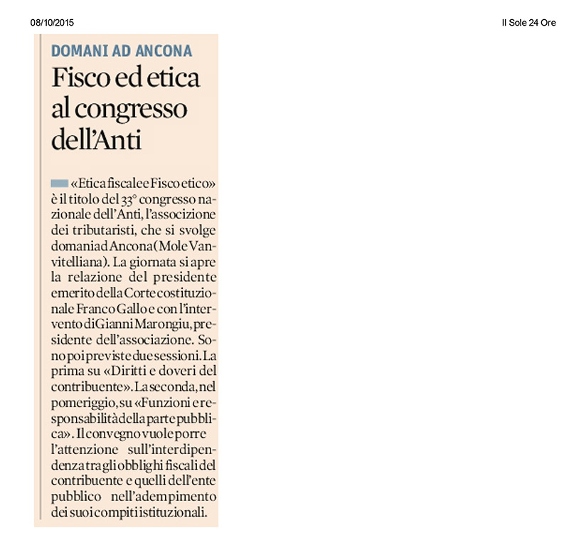 L’A.N.T.I. − Associazione Nazionale Tributaristi Italiani, costituita il 13 giugno 1949, è una libera associazione, interprofessionale, con personalità giuridica, senza scopo di lucro, alla quale aderiscono cattedratici, studiosi, cultori del diritto tributario e professionisti, questi ultimi con almeno cinque anni di anzianità nei rispettivi Albi. All’ANTI si può accedere esclusivamente per invito.